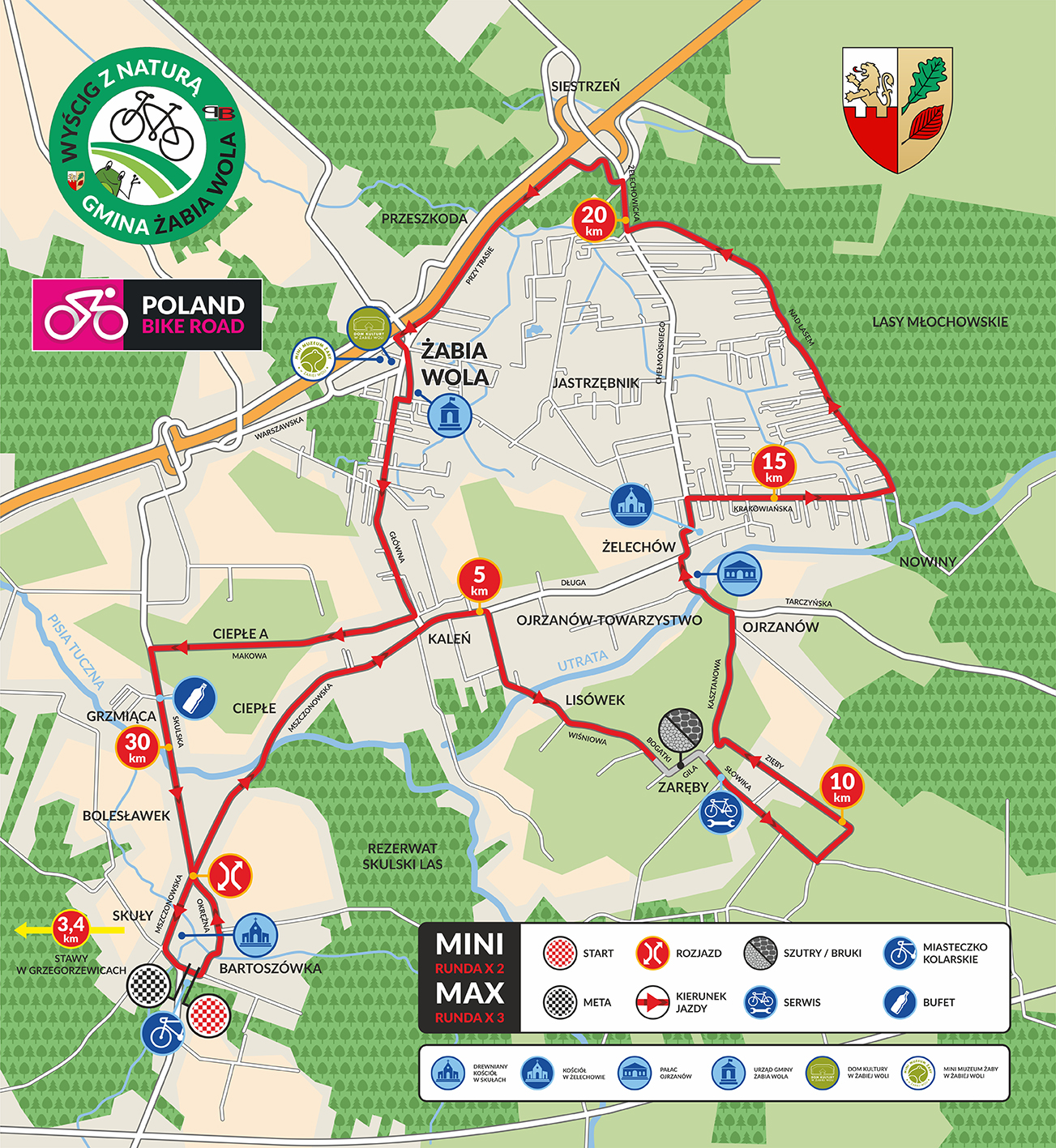 W niedzielę 31 sierpnia 2025 odbędzie się I Wyścig z Naturą w Gminie Żabia Wola. Kolarski peleton na rowerach szosowych będzie rywalizował na bardzo atrakcyjnej trasie na zachodnim Mazowszu, na szosach przede wszystkim podwarszawskiej Gminy Żabia Wola. To będzie zarazem trzeci finałowy etap nowego cyklu szosowego Poland Bike Road 2025, organizowanego przez Poland Bike. I Wyścig z Naturą w Gminie Żabia Wola odbędzie się na dwóch dystansach: MINI-62 km i MAX-92 km. Początek rywalizacji o godz. 12:00. Zapisać się do udziału można także w dniu wyścigu na miejscu w Biurze Zawodów.